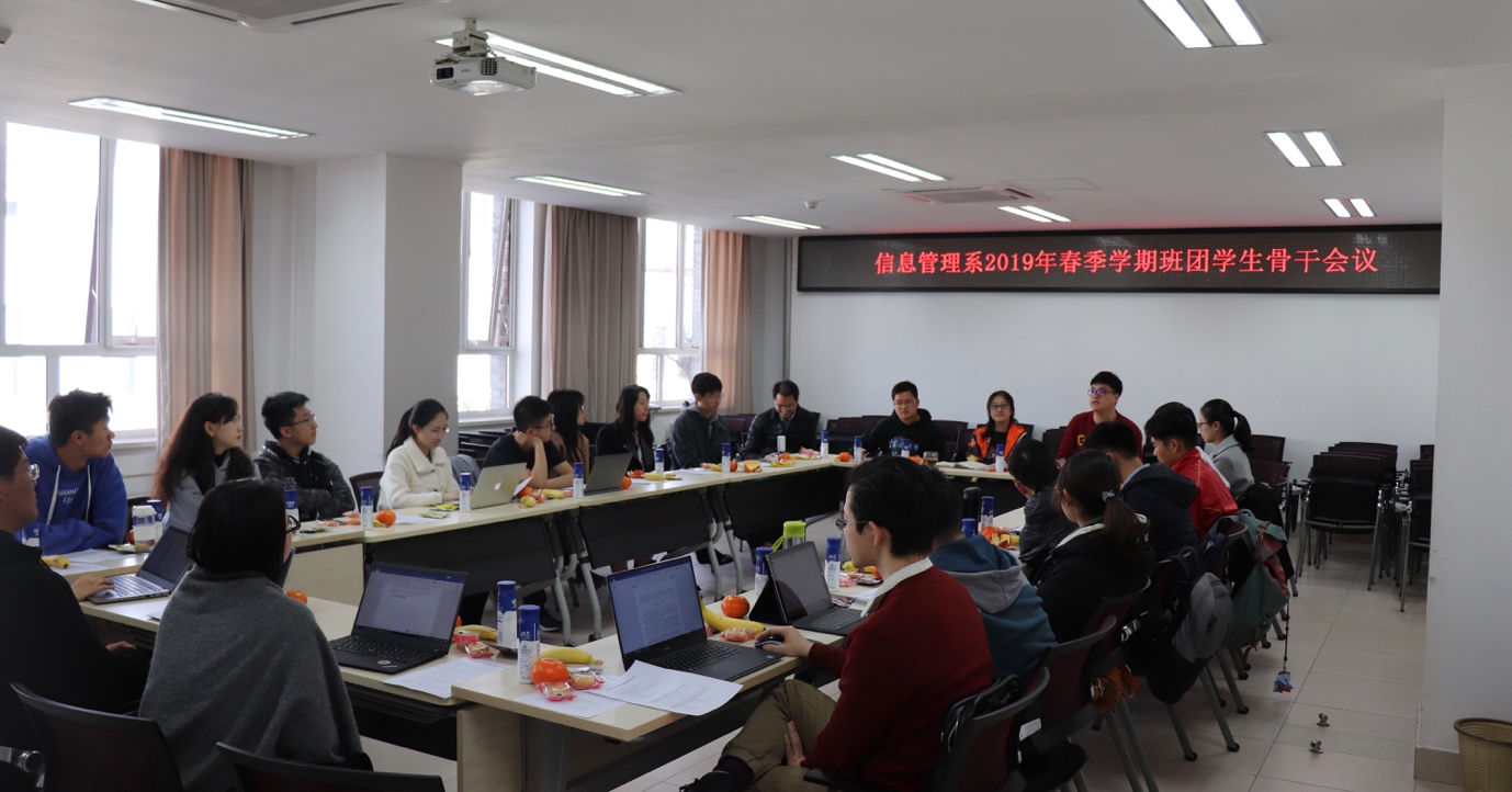 3月29日下午,信息管理系在方李邦琴楼414室召开2019年春季学期班团学生骨干会议。信息管理系党委副书记张妙妙、信息管理系团委书记李派及本硕博各班带班辅导员、班长、团支书参加了会议,会议由信息管理系团委常务副书记王李祥主持。