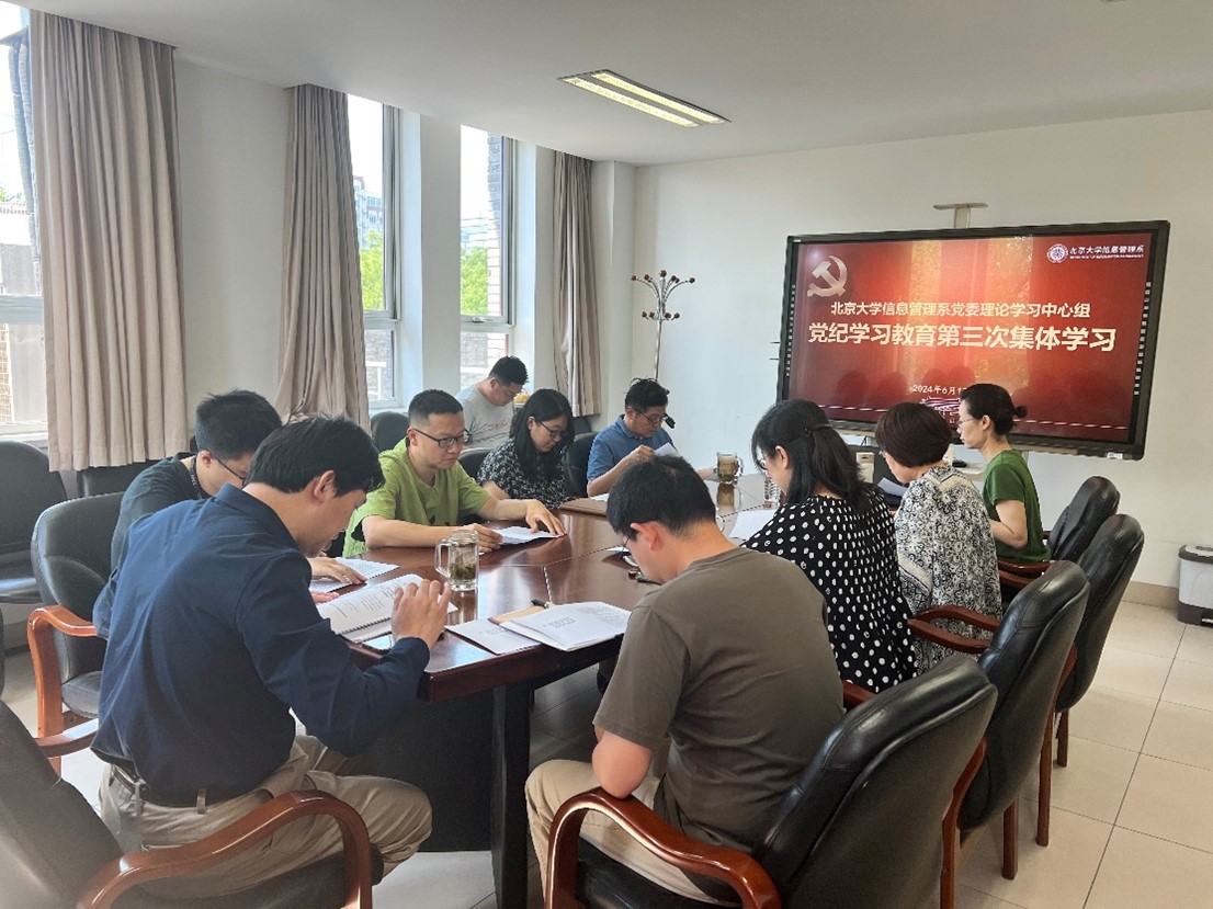 6月17日,信息管理系党委召开理论学习中心组会议,开展党纪学习教育第三次集体学习。会议由系党委书记李胜主持,全体党委委员及教工党支部书记参加。会议首先传达学习了学校《关于认真学习领会习近平总书记关于全面加强党的纪律建设的重要论述扎实开展党纪学习教育的通知》精神。随后,与会人员围绕《中国共产党纪律处分条例》(以下简称《条例》)和习近平总书记重要论述中关于“政治纪律”的内容开展集体学习,与会人员以领学形式原原本本学、逐章逐条学。会议强调,学习《条例》要将集体学习与个人自学相结合,深刻领会习近平总书记重要论述的科学内涵和实践要求。信息管理系党委将牢牢把握党纪学习教育鲜明主题和目标要求,按计划推进警示教育和实践教育工作计划,确保信息管理系党纪学习教育正确有力,取得实效。