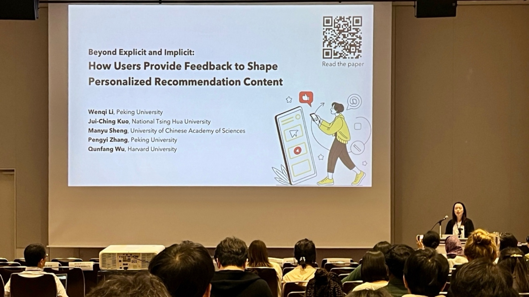 本系博雅博士后李文琦汇报了长论文《Beyond Explicit and Implicit: How Users Provide Feedback to Shape Personalized Recommendation Content》。该论文聚焦抖音、小红书等社交媒体的个性化推荐算法,将用户行为视角与信息系统视角相结合,根据用户对算法的理解和交互行为提出了此类个性化推荐平台的设计建议,以应对算法的不透明性带来的挑战。