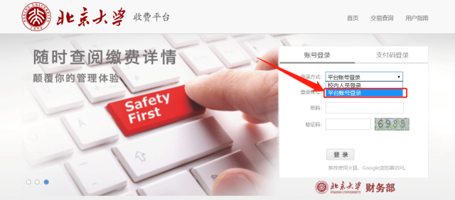 1、登录北京大学收费平台:https://cwsf.pku.edu.cn(推荐使用火狐、google浏览器访问)